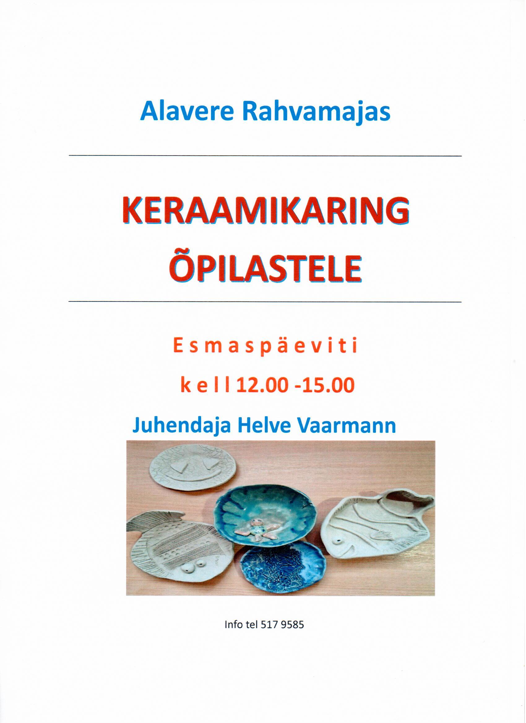 Ootame 1-9. klassi lapsi esmaspäeviti kell 12-15 Alavere rahvamajja keraamika tundi.