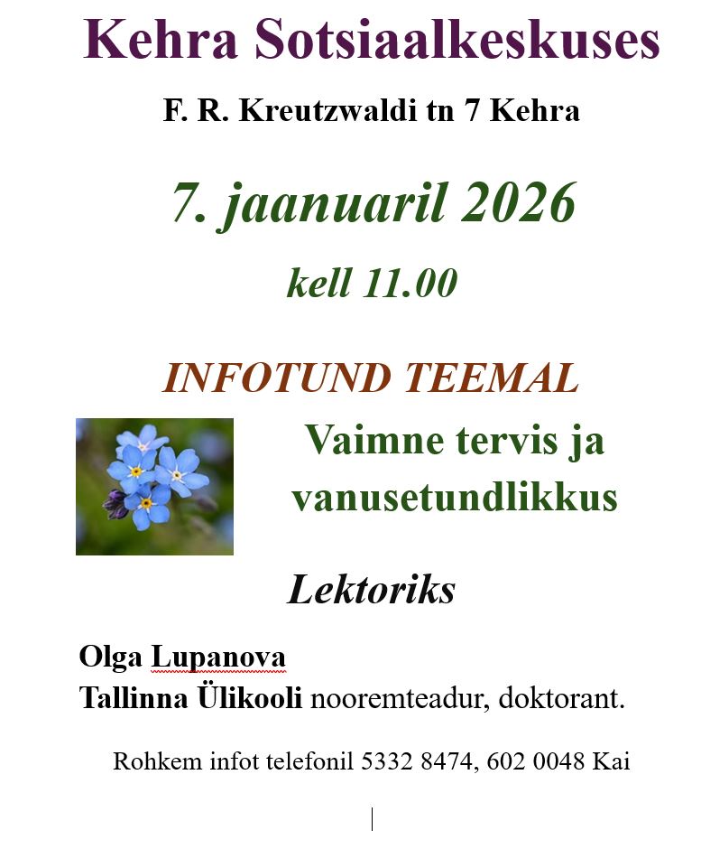 Kehra sotsiaalkeskuses vaimse tervise infotund 07.01.2026