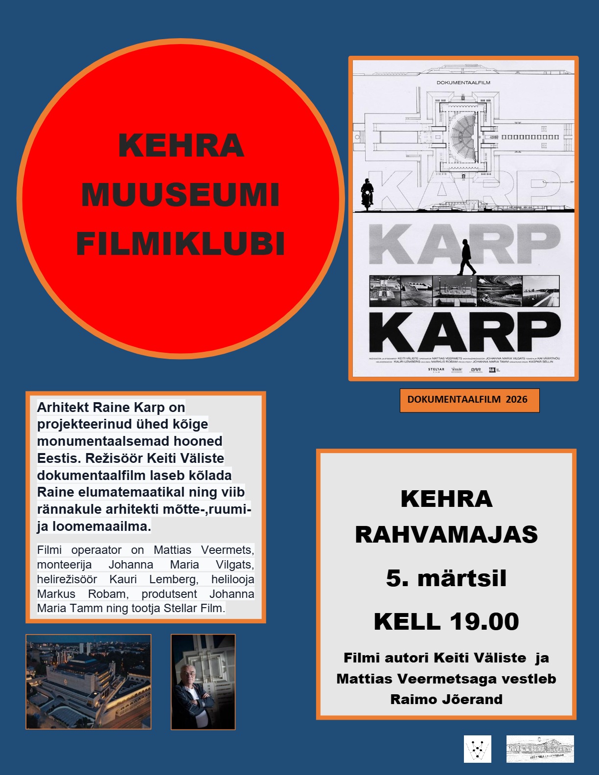 LinkVärskelt kinolevisse jõudnud režissöör“ Keiti Väliste dokumentaalfilm “KARP” portreteerib arhitekt Raine Karpi, kes on projekteerinud 20. sajandi lõpu kõige monumentaalsemad hooned Eestis, nagu Rahvusraamatukogu, Tallinna linnahall või nüüdseks ümber ehitatud hoone, mida tunti rahvasuus Karla katedraali nime all. Karbi enda sõnul ei kujunda ta linnapilti ega tee kunsti, vaid lahendab lihtsalt probleeme. Film viib vaataja rännakule Raine Karbi mõtte-, ruumi- ja loomemaailma.