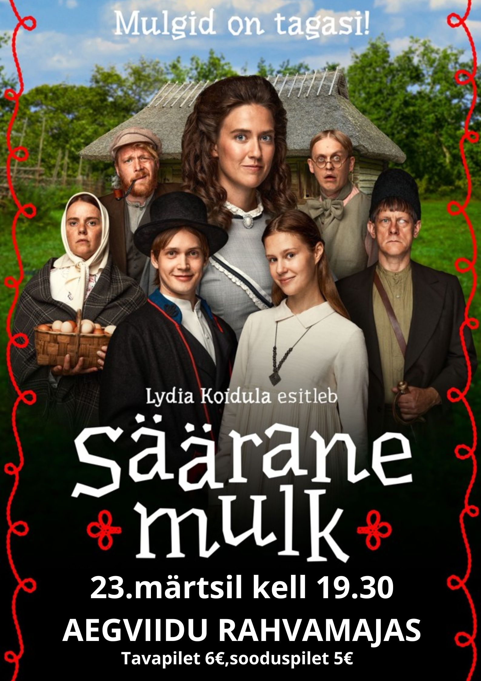 Filmi „𝐕𝐢𝐠𝐚𝐬𝐞𝐝 𝐩ruudid” tegijate uus kodumaine komöödiafilm „𝐒ää𝐫𝐚𝐧𝐞 𝐦𝐮𝐥𝐤” põhineb Eesti kirjandusloo esimesel algupärasel näidendil. Stsenarist Ott Kilusk on kohandanud lustaka seikluse kinolinale, tuues loo keskmesse tegelasena ka autori, Lydia Koidula enese.