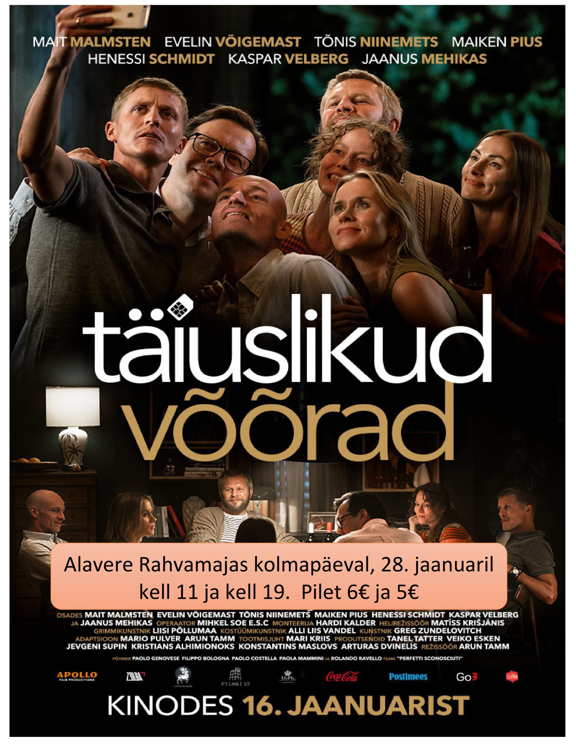 Alavere Rahvamajas uus eesti mängufilm kolmapäeval, 28, jaanuaril kell 11 ja kell 19.