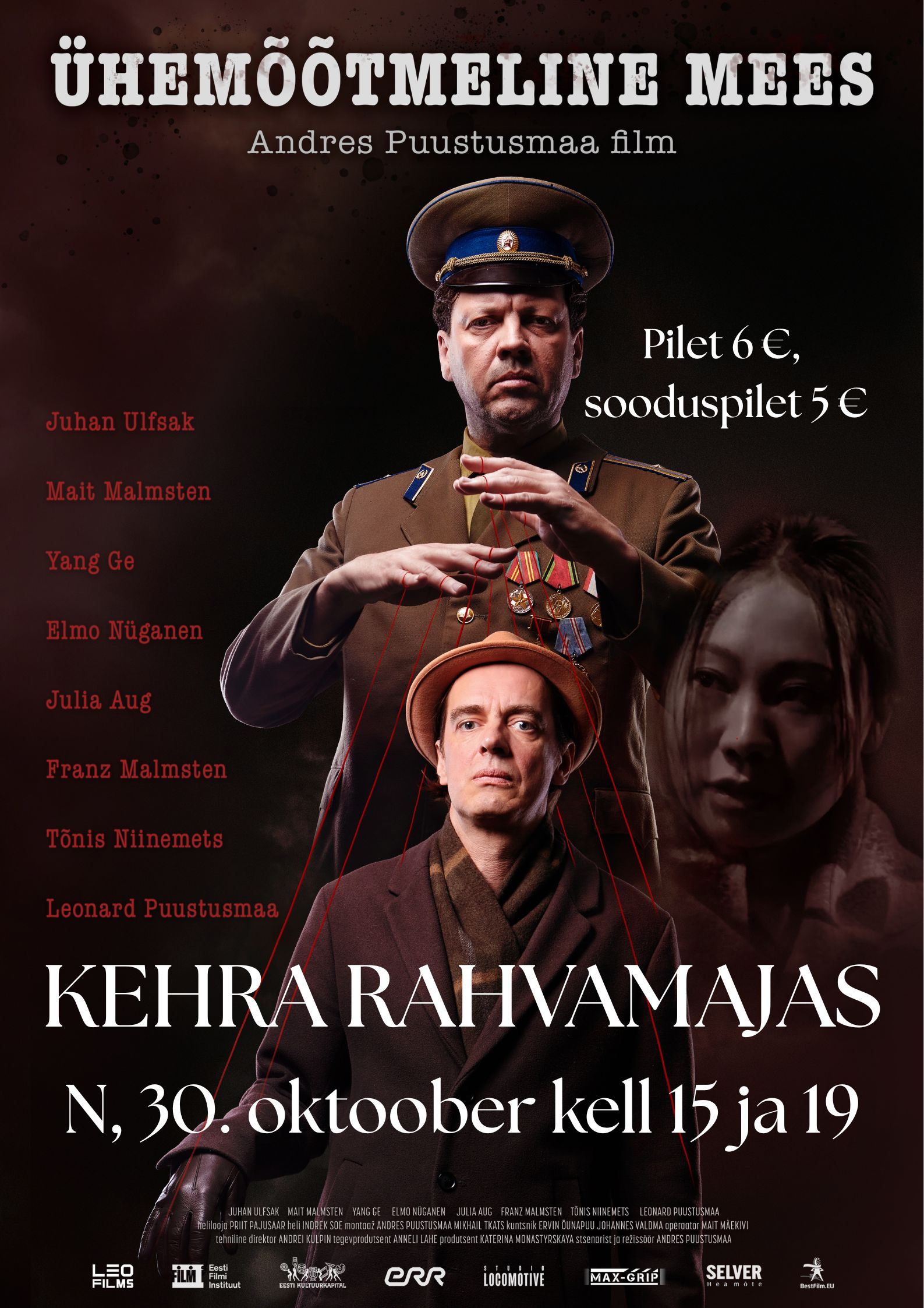 🎥NELJAPÄEVAL, 30. oktoobril kell 15.00 ja 19.00 draama/põnevik “Ühemõõtmeline mees”. Spioonist Raul elab halli elu. Tema isa on endine KGB ohvitser, kes on hävitas patoloogilise armukadedusega oma naise elu. Viimaselt ülesandelt koju minnes, satub Raul tänaval peale jõhkrale peksmisele. Ohver on hiinlanna, kelle mees on hoole alla võtab ja algab nende kahe ühise keele otsimine ja teekond Hiina.