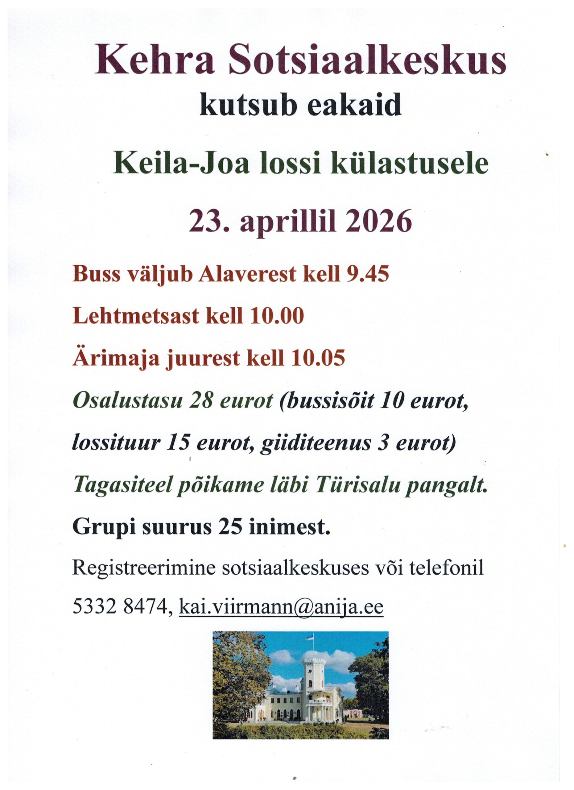 Kutsume eakaid Keila-Joa lossi külastama 23 aprillil