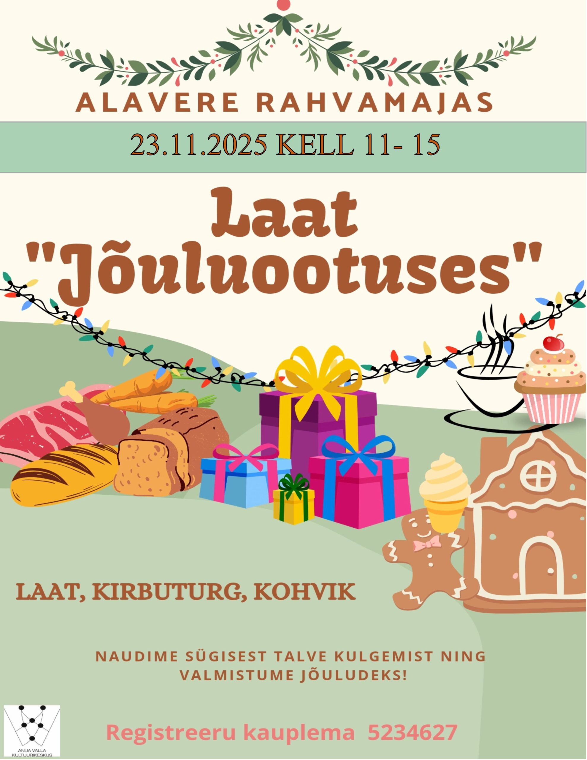 Alavere Rahvamajas on taas tulemas JÕULUOOTUSE laadapäev, kust leiad maitsva toidu lauale ning midagi põnevat, ehedat ja ainulaadset kingikotti. Avatud kohvik.