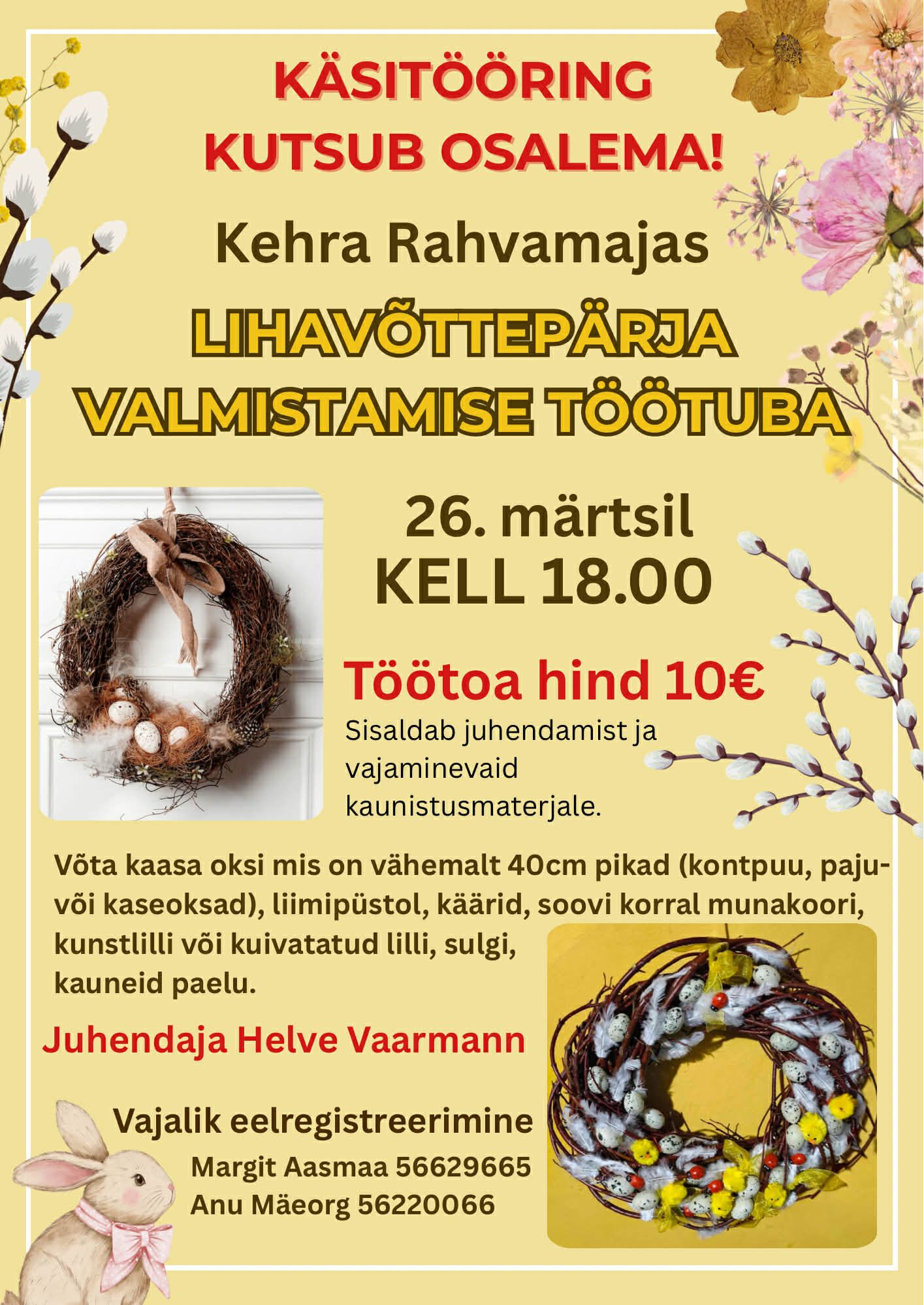 Oled oodatud lihavõttepärja valmistamise töötuppa.
