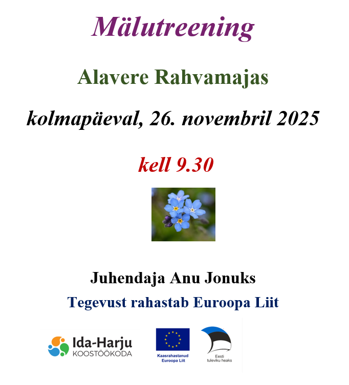 Mälutreening Aegviidu rahvamajas 25.11.2025 kell 14.00