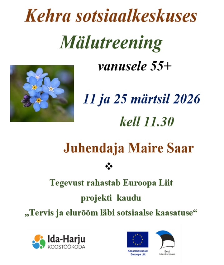 Mälutreening Kehra sotsiaalkeskuses 11 ja 25 märtsil kell 11.30
