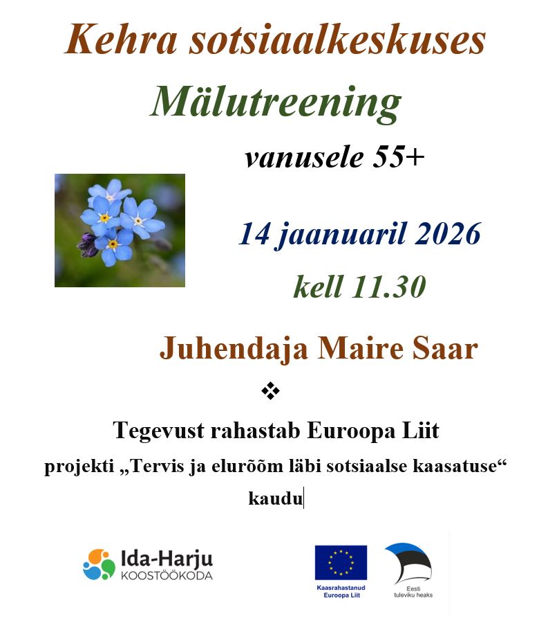 Mälutreening Kehra sotsiaalkeskuses 14 jaanuaril 2026 kell 11.30