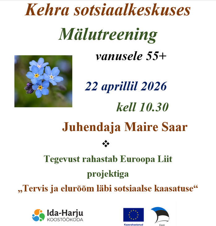 Mälutreening Kehra sotsiaalkeskuses 22 aprillil 2026 kell 10.30