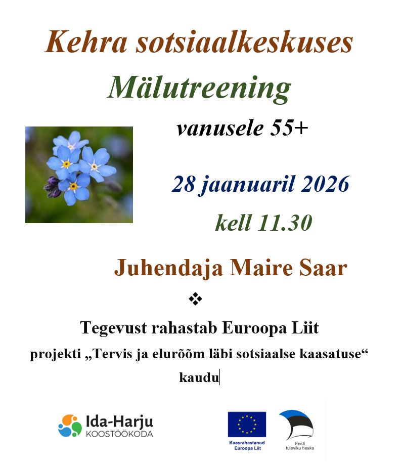 Mälutreening Kehra sotsiaalkeskuses 28 jaanuaril 2026 kell 11.30