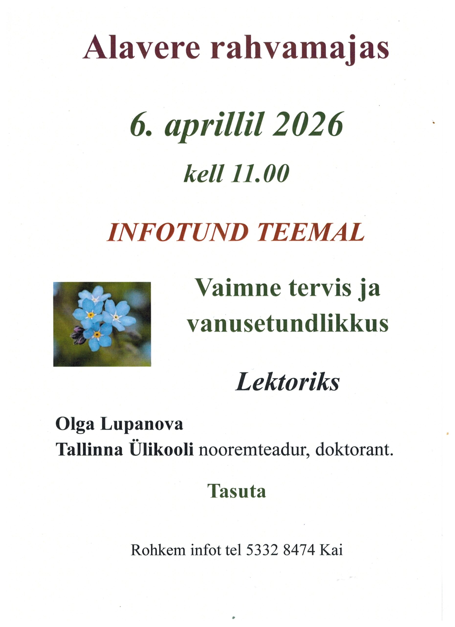 Loeng “Vaimne tervis ja vanusetundlikkus” Alavere rahvamajas 6 aprillil kell 11