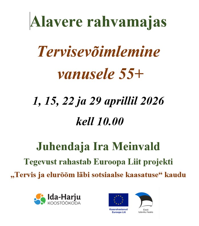 Tervisevõimlemine Alavere rahvamajas 1, 15, 22 ja 29 aprillil kell 10